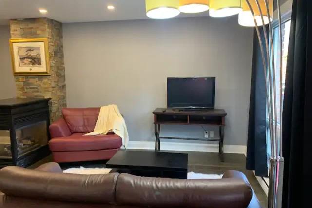 The cozy living room area offers a great space to just sit and veg while binge watching Netflix or other favourite streaming channels on Roku.