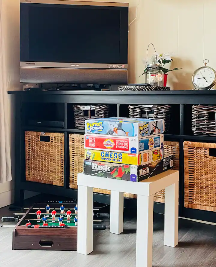 For staying in, a Roku Stick, DVD movies, board games, and books for various ages are provided. This includes Disney+, Prime Video, Roku Channel, YouTube, CBC, Netflix (own account required) and more.
